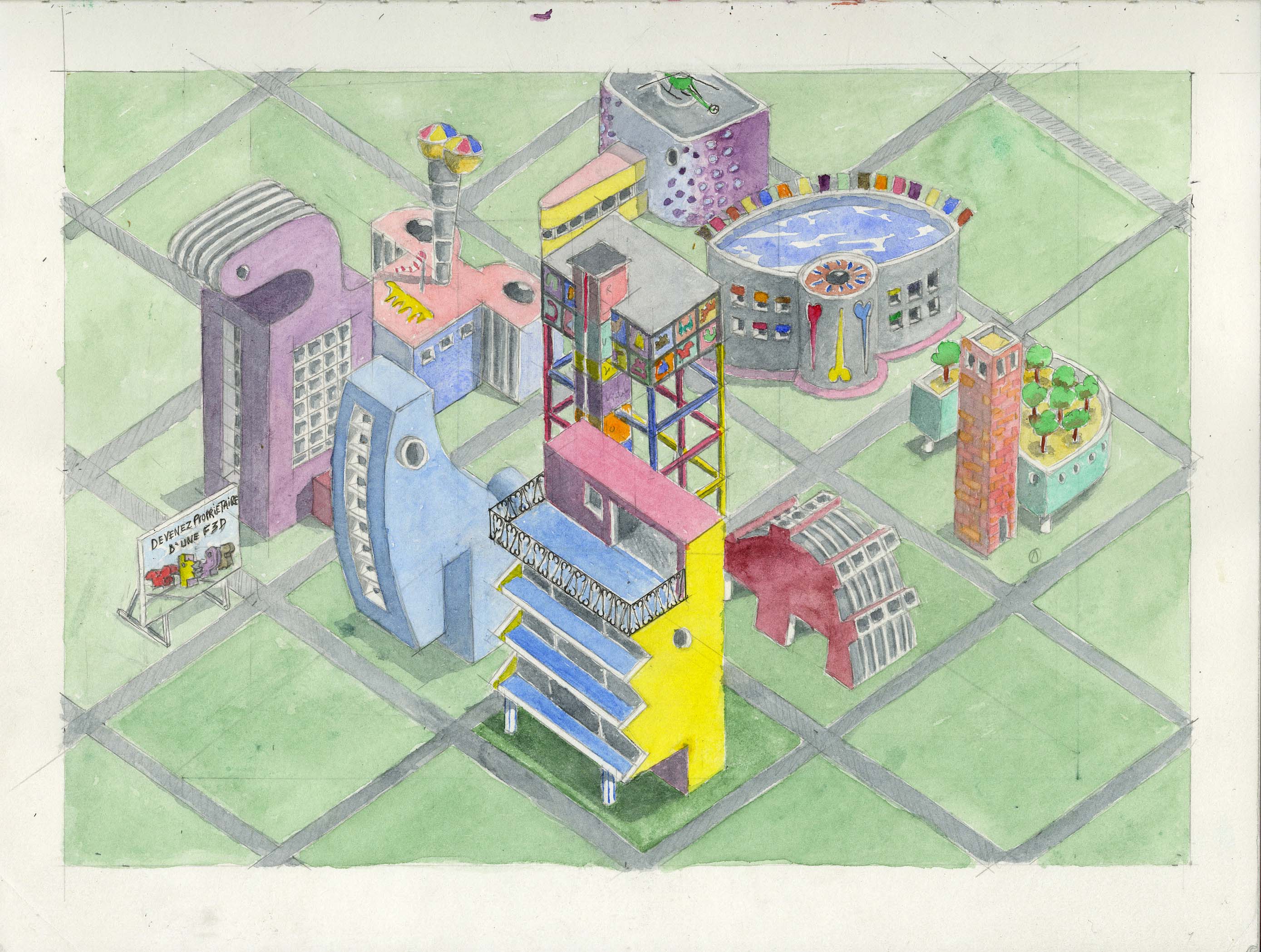 Cette rubrique regroupe un ensemble de dessins représentant des architectures anthropomorphiques, biomorphiques, anamorphiques, avec pour certaine, une référence à la représentation architecturale du quattrocento.
