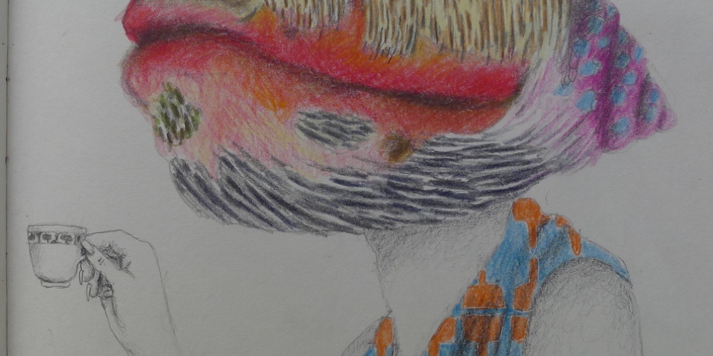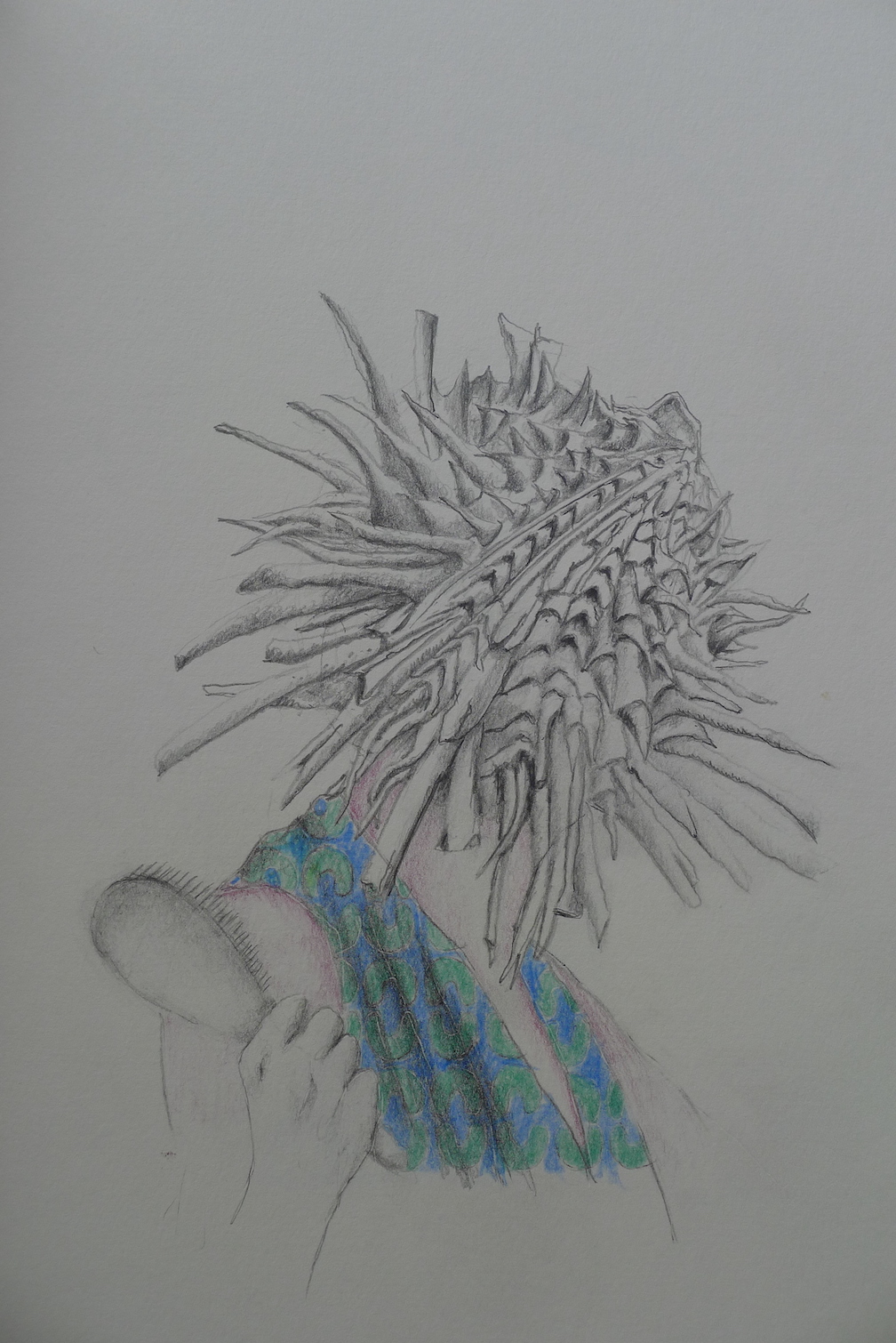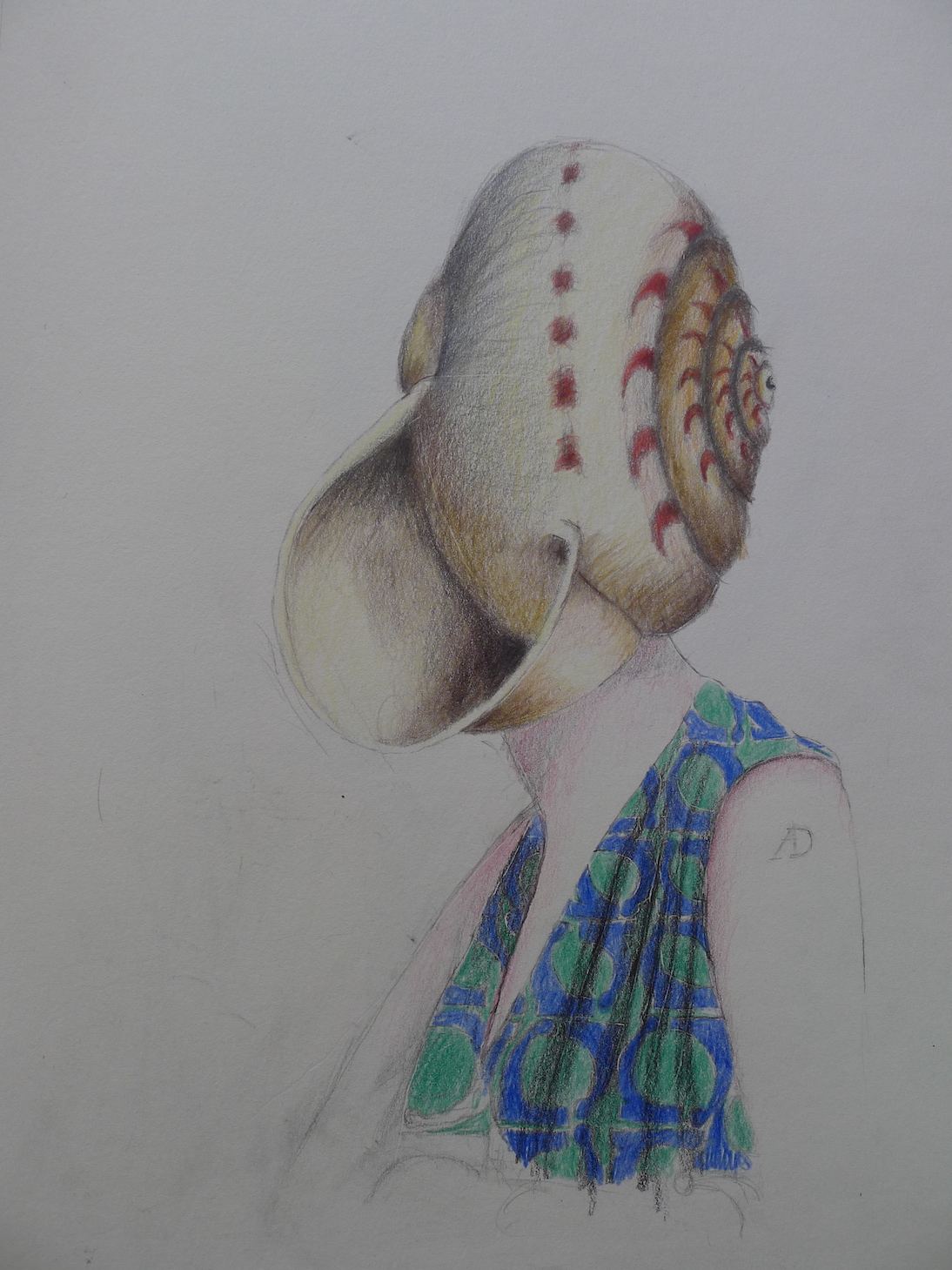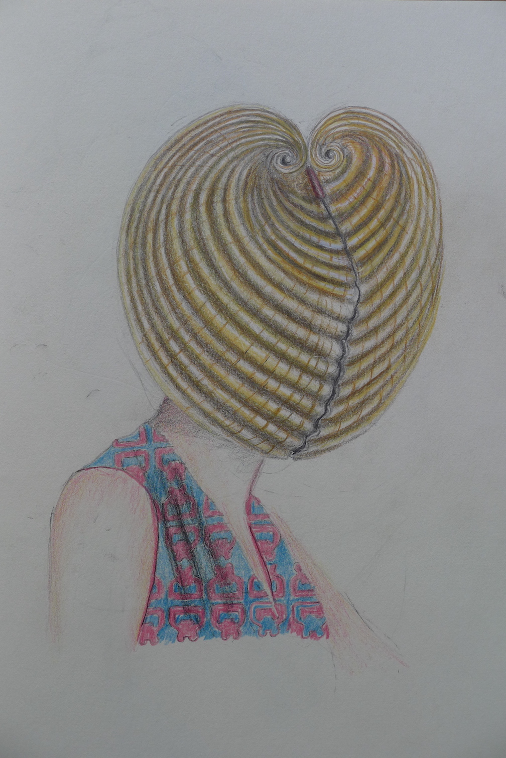 Couverture, La femme et la coquille 2018 Crayons de couleur sur papier 26 X 35 cm